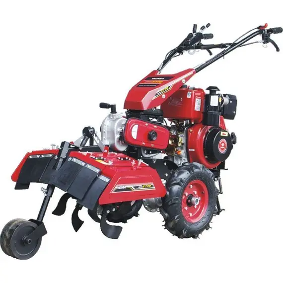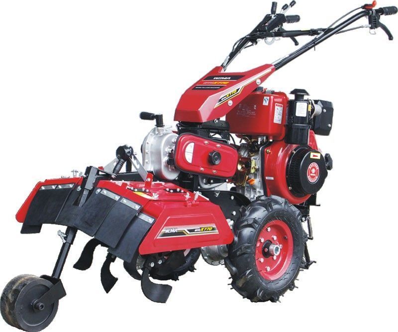 К тяжелому классу мотоблоков относятся все агрегаты с водяным охлаждением, а также дизельные двигатели мощностью свыше 8 л.с. и моторы с воздушным охлаждением от 9 л.с. Встретить бензиновую модель в данном сегменте практически невозможно. Вес таких машин может достигать 300 кг, поэтому модели с мощностью больше 14 л.с. и весом 280 кг