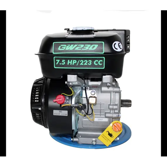 Бензиновый двигатель GrunWelt GW230F-T25 с мощностью 7.5 л.с., станет отличной заменой старого мотора для мотоблока, культиватора, компрессорах, мотопомпах, различной садовой и строительной техники. Оснащается двигатель фильтром с масляной ванной, валом под шлиц з диаметром 25 мм и топливным баком на 5 л.