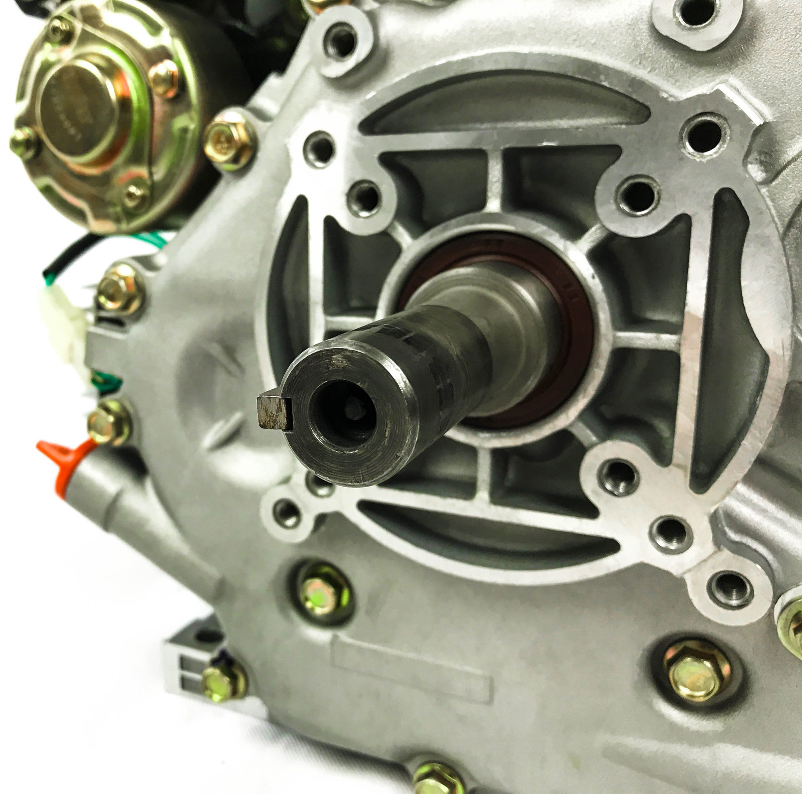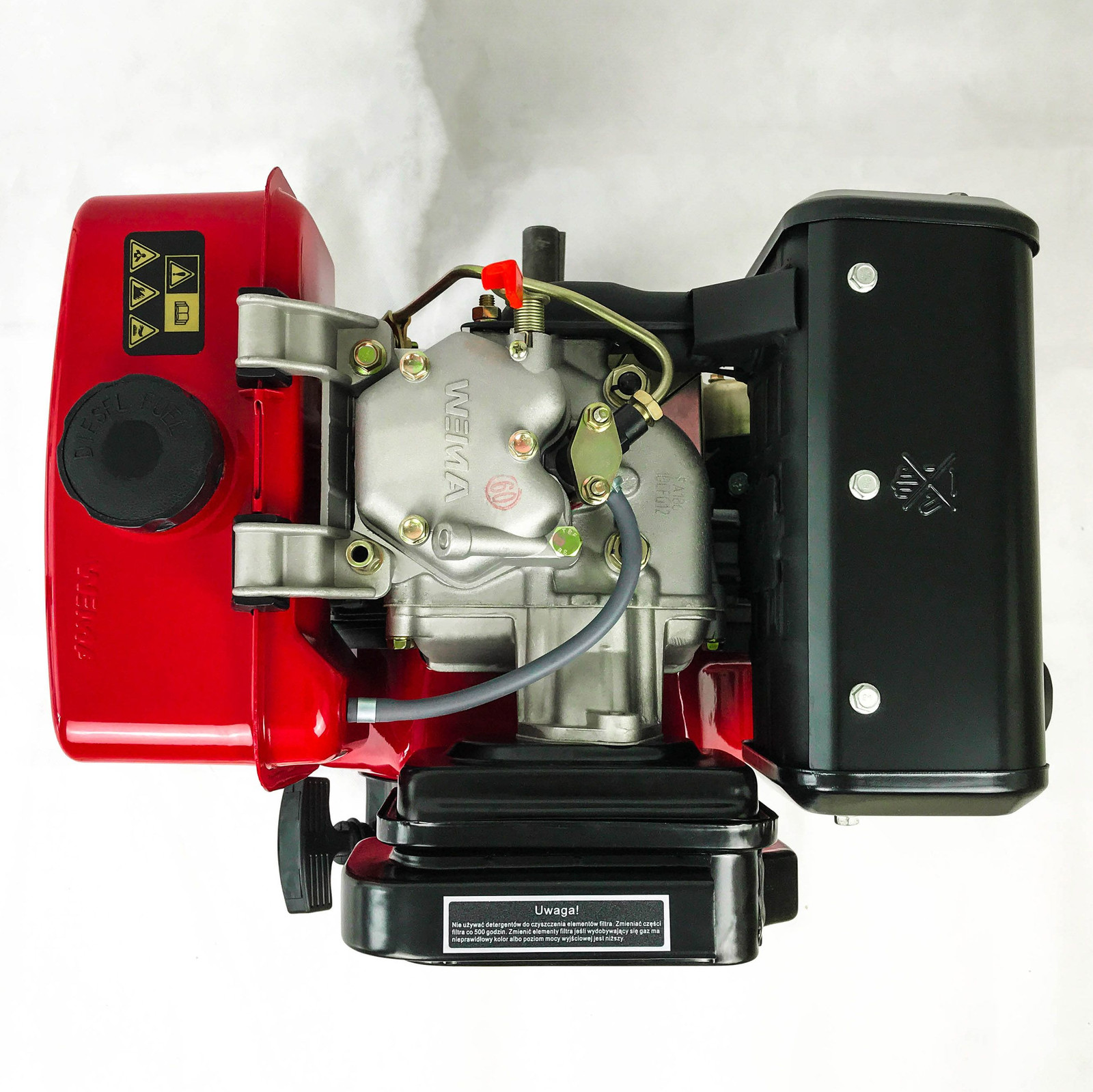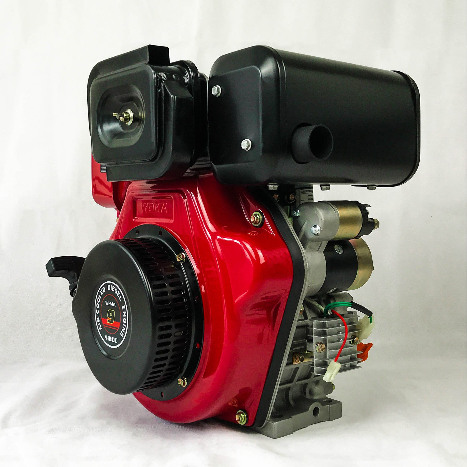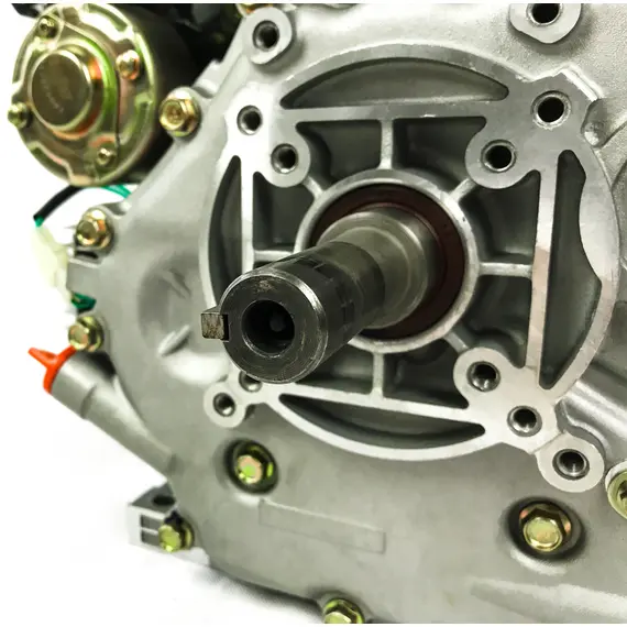 Гильза двигателя WEIMA WM186FВE сделана из износоустойчивого чугуна, благодаря чему повышается ресурс самого агрегата. Особенностью данного мотора является то, что он имеет увеличенный ход поршня и его объём составляет 418 кубических сантиметров. Вал под шлицы на 25 мм позволяет присоединить дополнительные навесные приспособления. Также оснащается двигатель стартером для легкого запуска, генератором, замком для пуска и реле-регулятором.