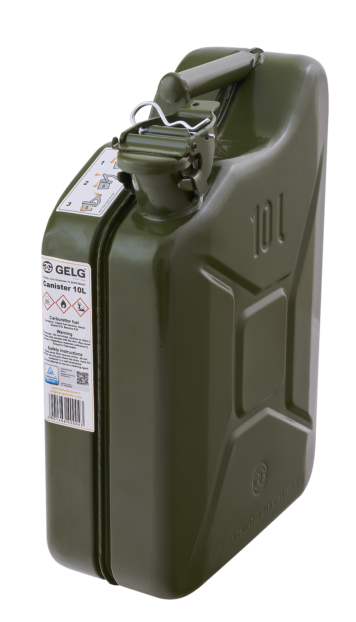 Канистра 10л имеет сертификат TUV/GS и UN ADR/GGVSSEB, поэтому она соответствует и предопределена для перевозки «опасных» жидкостей в ненормированных условиях окружающей среды.