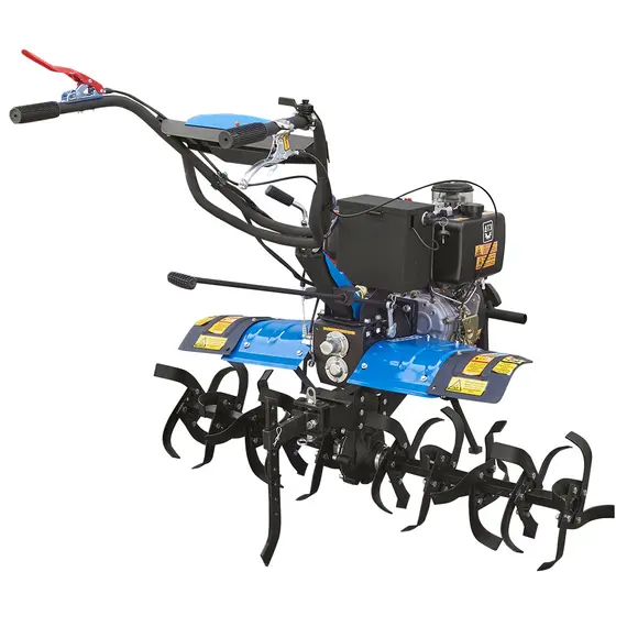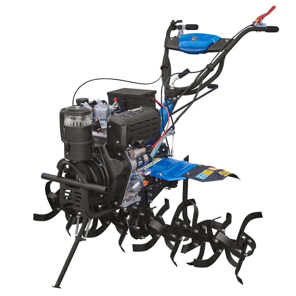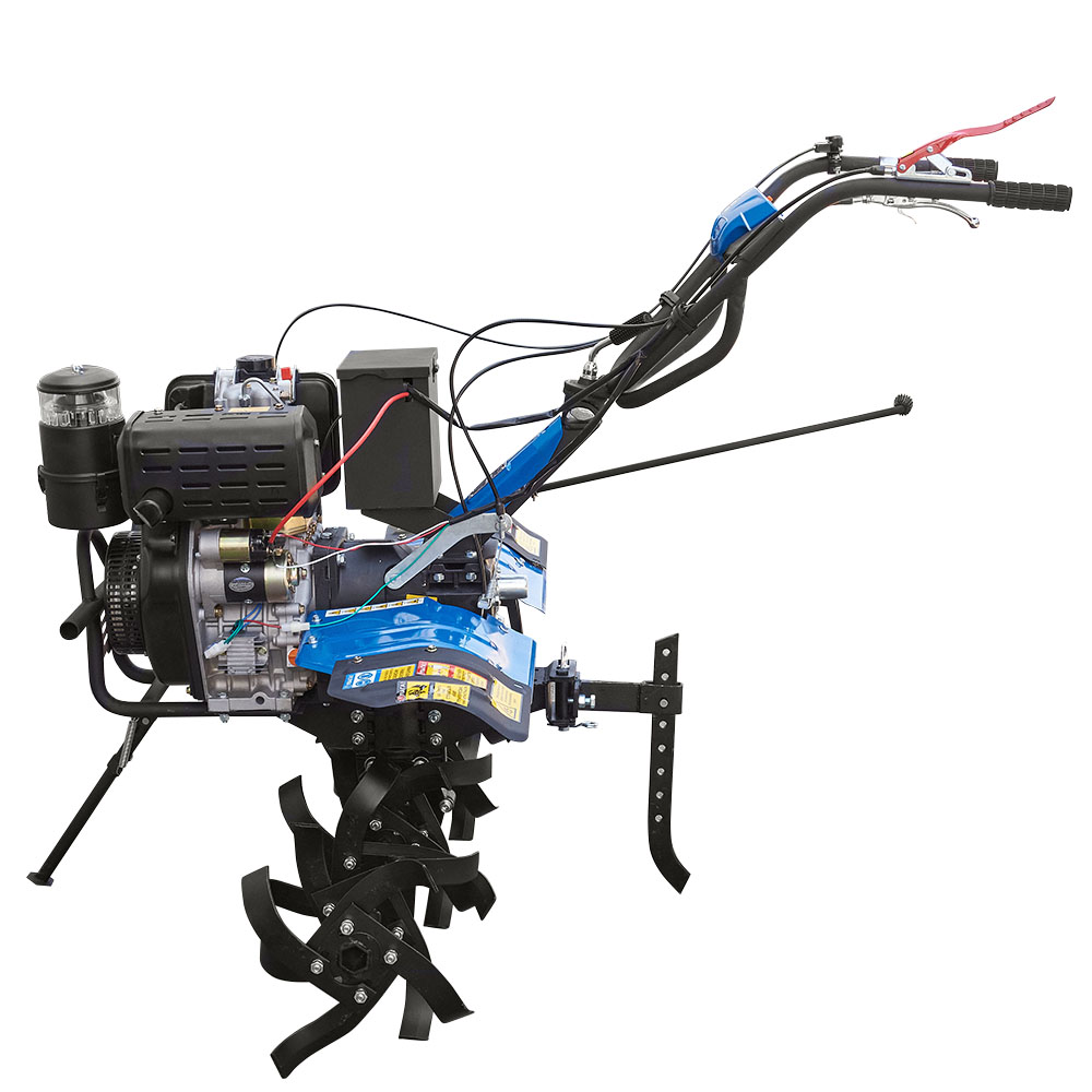 Топливодизель Мощность двигателя, л.с.6 Охлаждение двигателявоздушное, принудительное Запуск двигателяэлектростартер, механический ручной Передачи вперед3 Разблокировка дифференциаланет В комплектефреза + рычаг упора + колеса