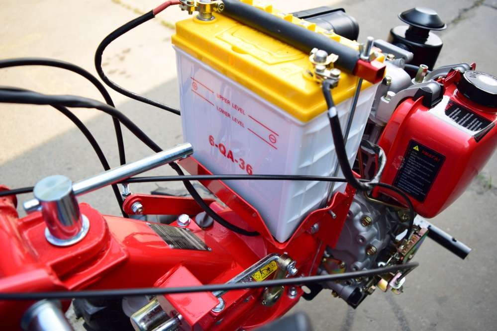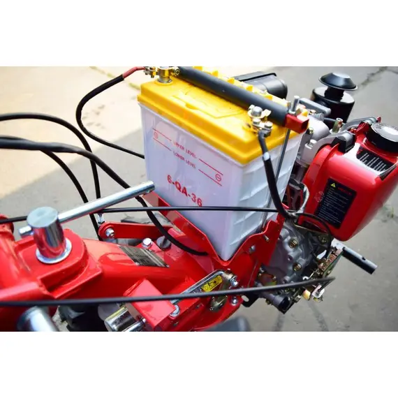 Мотоблок Forte 1050E имеет электрическую и ручную систему запуска. Он оснащен дизельным двигателем (6 л.с.), что позволяет повысить качество работы машины и сократить расход топлива. Принудительная система охлаждения не допускает возникновения перегрева в моторе, а значит, увеличивает его рабочий ресурс.