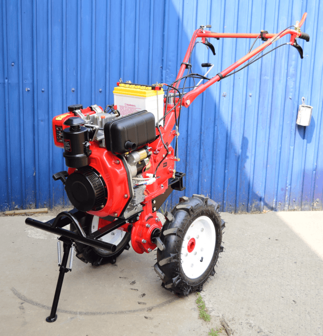 К тяжелому классу мотоблоков относятся все агрегаты с водяным охлаждением, а также дизельные двигатели мощностью свыше 8 л.с. и моторы с воздушным охлаждением от 9 л.с. Встретить бензиновую модель в данном сегменте практически невозможно. Вес таких машин может достигать 300 кг, поэтому модели с мощностью больше 14 л.с. и весом 280 кг