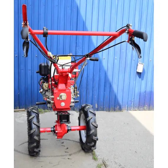 Вал отбора мощности ВОМ обеспечивает возможность использования разнообразного навесного оборудования и выполнения большого спектра работ. Многодисковое сцепление в масляной ванне отвечает за плавную работу мотоблока без перегрузок. А колеса 4.00-10 с протекторами повышенной проходимости легко преодолевают разнообразные препятствия и обеспечивают легкий ход машины.