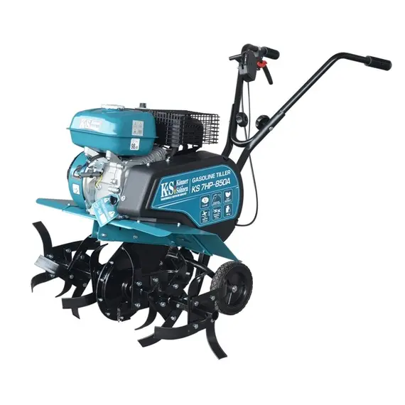 Бензиновые культиваторы ТМ Könner & Söhnen с ременным приводом, мощностью 7 л.с. подходят для обработки всех типов почв, от рыхлой до целинно-глинистой. Это практичные, надежные и многофункциональные сельскохозяйственные агрегаты для решения нескольких задач – обработки почвы разной жесткости, посадка сельскохозяйственных культур, уборка урожая. Уникальная конструкция выполнена с использованием современных технологий, имеет компактные размеры и стильный дизайн. Мощные и экономичные четырехтактные двигатели культиваторов «Könner & Söhnen» соответствуют самым современным экологическим стандартам эмиссии выхлопных газов EURO-V, предназначенные для длительных работ, обеспечивают высокую производительность. Модель культиватора KS 7HP-850A компактных размеров имеет транспортировочное колесо, которое позволяет легко маневрировать даже на малых земельных участках. Культиватор предусматривает установку дополнительного навесного оборудования (например, плуг-окучитель, плуг для вспашки, картофелекопатель). |
