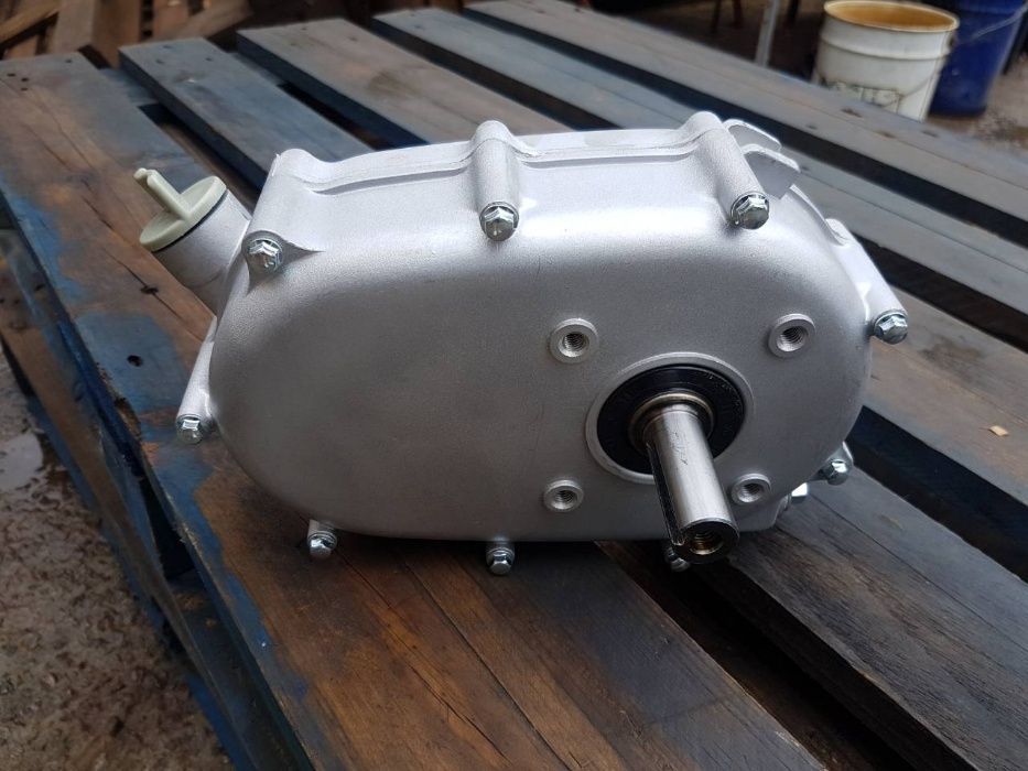 Цепной понижающий редуктор со центробежным сцеплением устанавливается на двигатели общего назначения с диапазоном мощностей от 7 - до 16 л.с. с выходным валом 25 мм. Он предназначен для понижения рабочих оборотов двигателя на величину вдвое меньшую по отношению к исходному значению (как правило с 3600 до 1800 об/мин.) и одновременным увеличением крутящего момента в два раза на выходном вале.