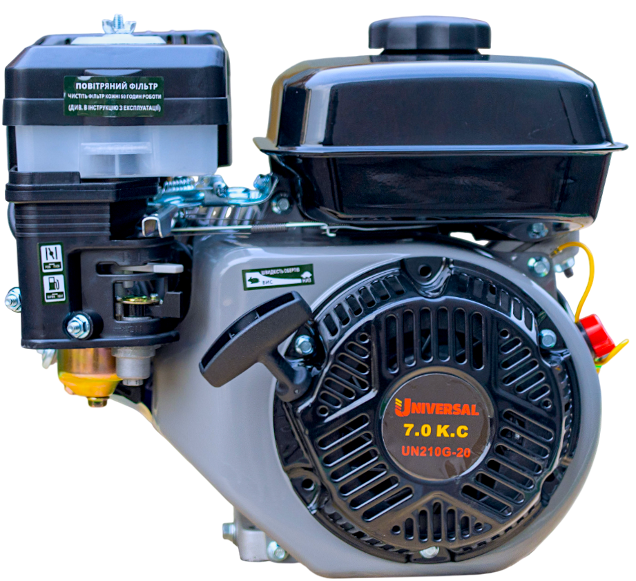 - Надежность: Изготовлен из высококачественных материалов и соответствует самым высоким стандартам качества, двигатель UNIVERSAL UN210G-19 гарантирует долговечность и надежность в работе в течение длительного периода. Рекомендуется использовать бензин марки 92.