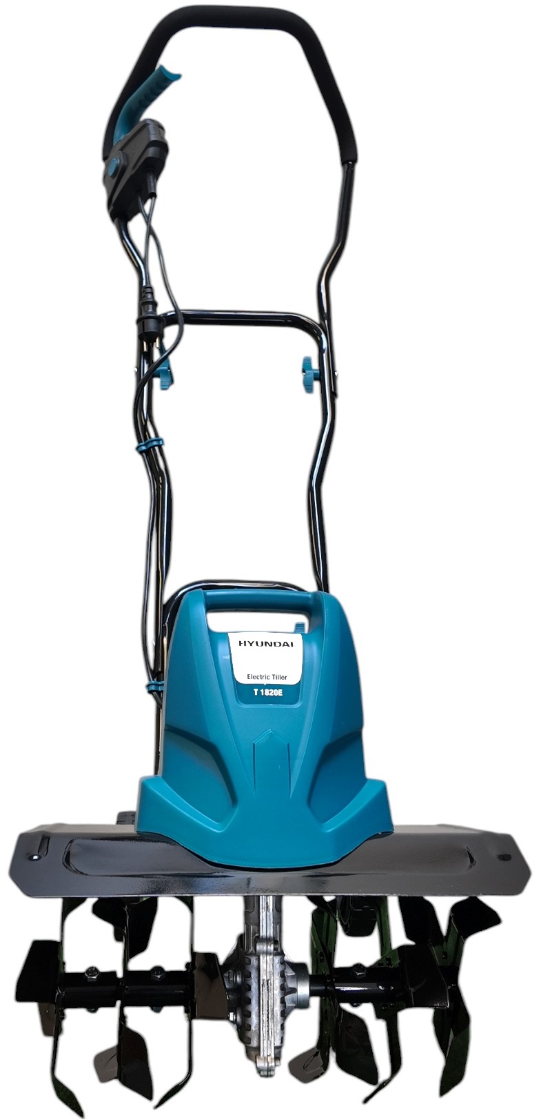 Електрокультиватор Hyundai T 1820E - максимально комфортно забезпечить роботу на дачах, в садах. Обладнаний двигуном (номіналом 15400 Вт), черв'ячним редуктором і сталевими фрезами з двома позиціями регулювання - 2300 і 4000 мм. Культиватор електричний знадобиться Вам для землеобработкі зовнішнього шару грунтів, грядок, квітників, для змішування з добривами, для теплиць, парників. Незначна вага, компактність надають можливість даної моделі бути маневреної в обробці малодоступних ділянок грунту.