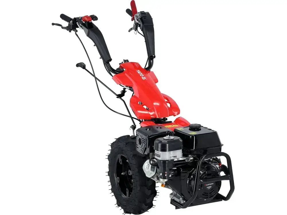 Виробник/БрендYATO (ЯТО) Паливобензин Потужність двигуна максимальна, к.с.12 Охолодженняповітряне, примусове Тип запуску:електростартер, механічна ручна Тип приводупряма передача Передачі вперед3 Передачі назад2 Розміщення ґрунтофрезизамість коліс У комплектіважіль упору + колеса + акб