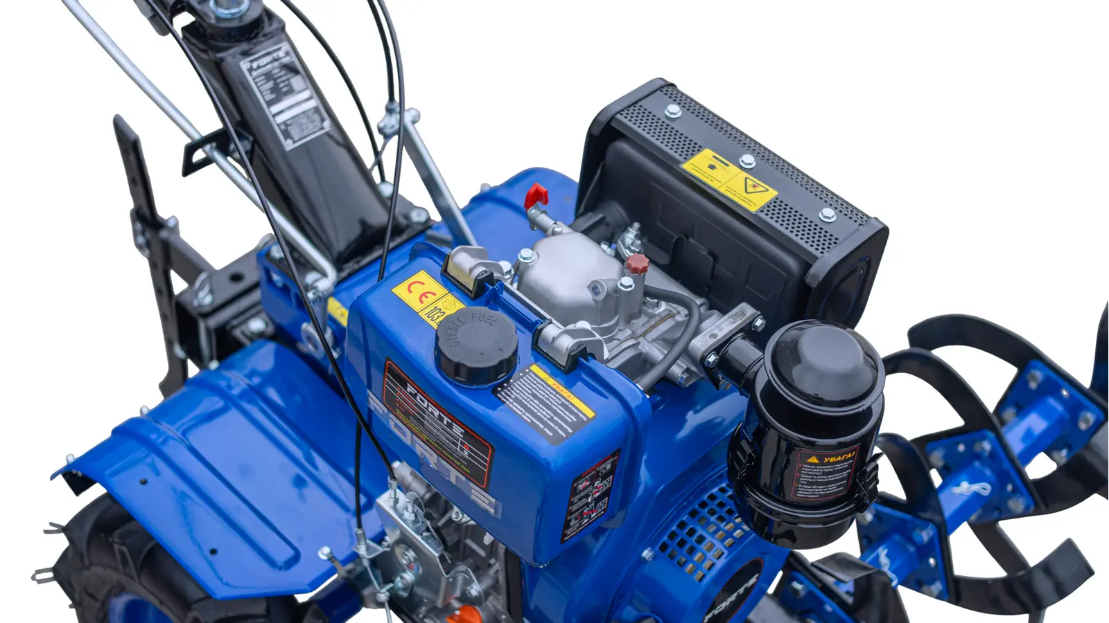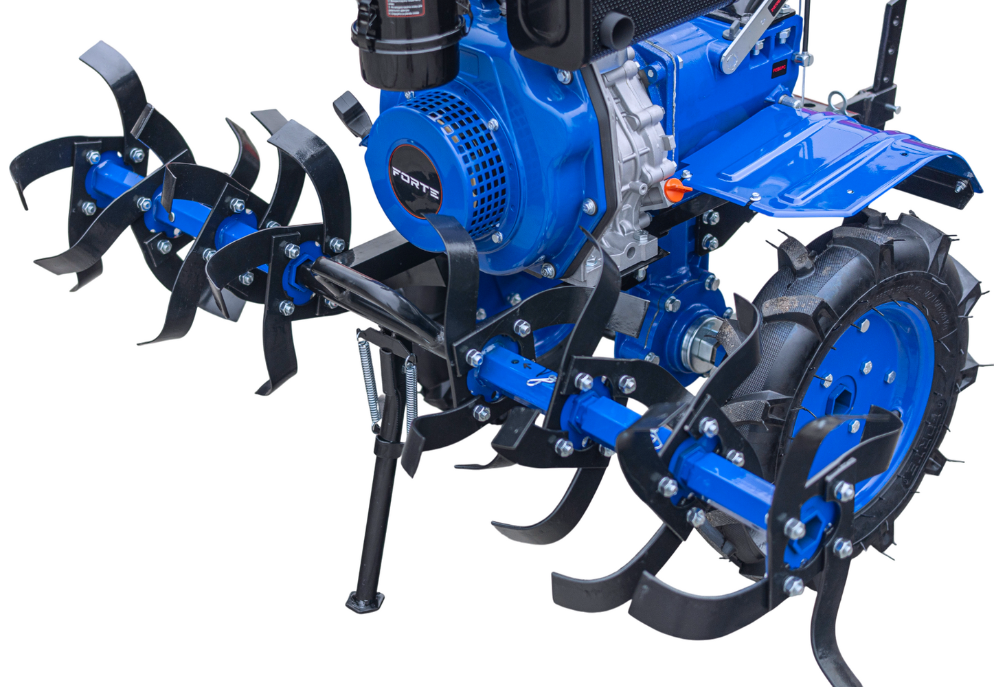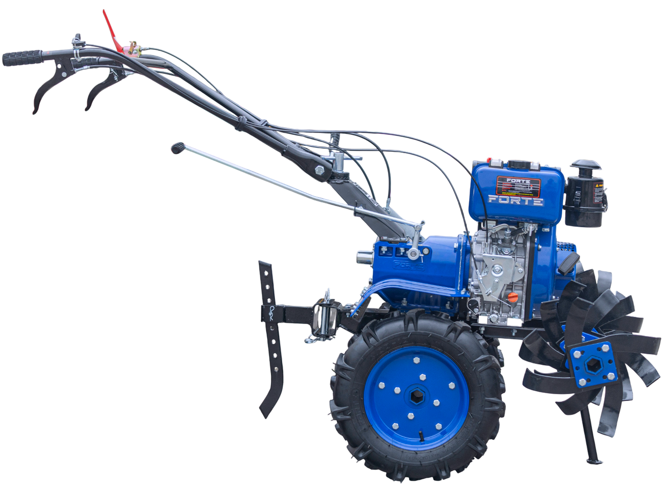 Паливодизель Потужність двигуна максимальна, к.с.8 Охолодженнярідинне (радіатор) Система запускуелектростартер, механічна ручна Число передач мотоблока вперед6 Розблокування диференціалає ВиробникForte (Форте)
