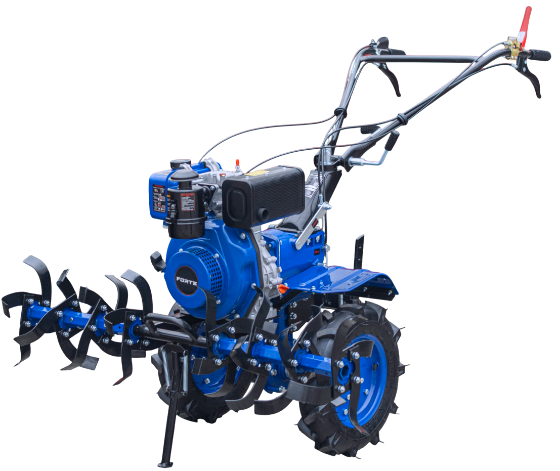 Виробник/БрендForte (Форте) Паливодизель Потужність двигуна максимальна, к.с.6 Охолодженняповітряне, примусове Тип запуску:механічна ручна Тип приводупряма передача Передачі вперед2 Передачі назад1 Розміщення ґрунтофрезизамість коліс