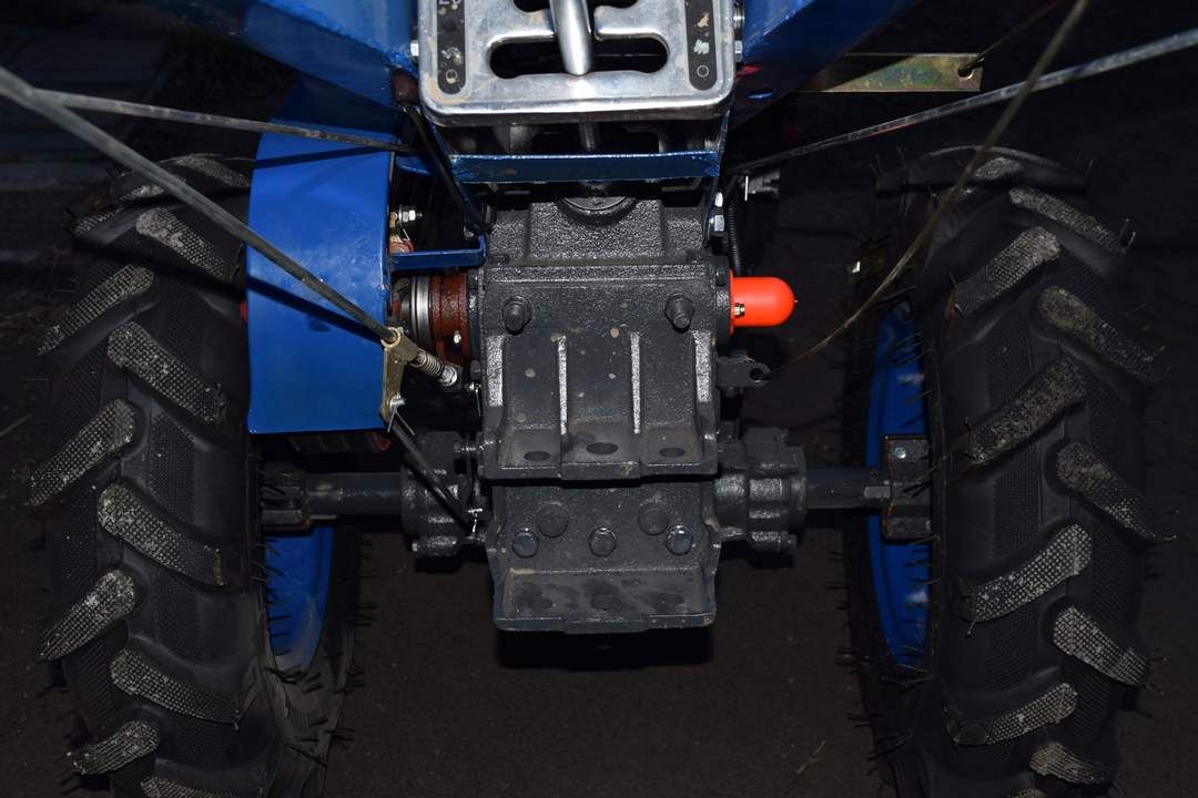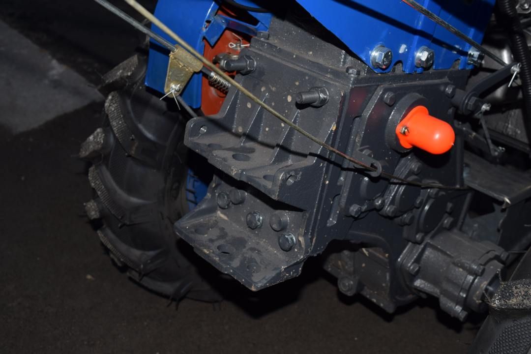 - Мотоблок Форте МД 121Е (Синій) — це не тільки надійна машина. Це техніка з дуже високими показниками прохідності на будь-якому ґрунті. Цьому сприяють великого діаметра колеса, на які поставлені шини з агресивним протектором. Розблокування диференціала знижує навантаження на руки і спину користувача при проходженні складних ділянок і дозволяє мінімізувати площу майданчику поворотів і розворотів.