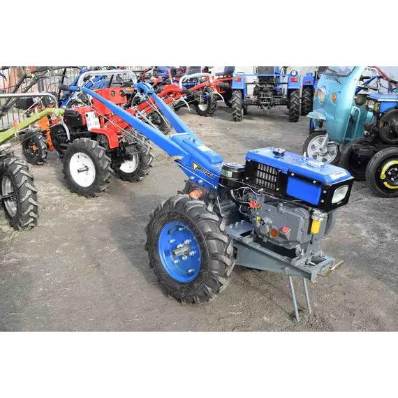- У пристрої синього мотоблока Форте МД 81 є галогенова фара, яка добре освітлює робочу площадку в сутінках або темний час доби. Тому при необхідності можна виконувати роботи в будь-який час дня.