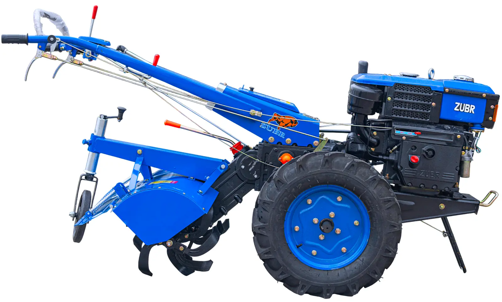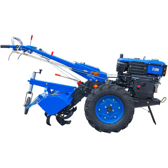 Виробник/БрендZubr (Зубр) Паливодизель Потужність двигуна максимальна, к.с.10 Охолодженнярідинне (радіатор) Тип запуску:механічна ручна Тип приводупасова передача Передачі вперед6 Передачі назад2 Розміщення ґрунтофрезиокремо від коліс за мотоблоком