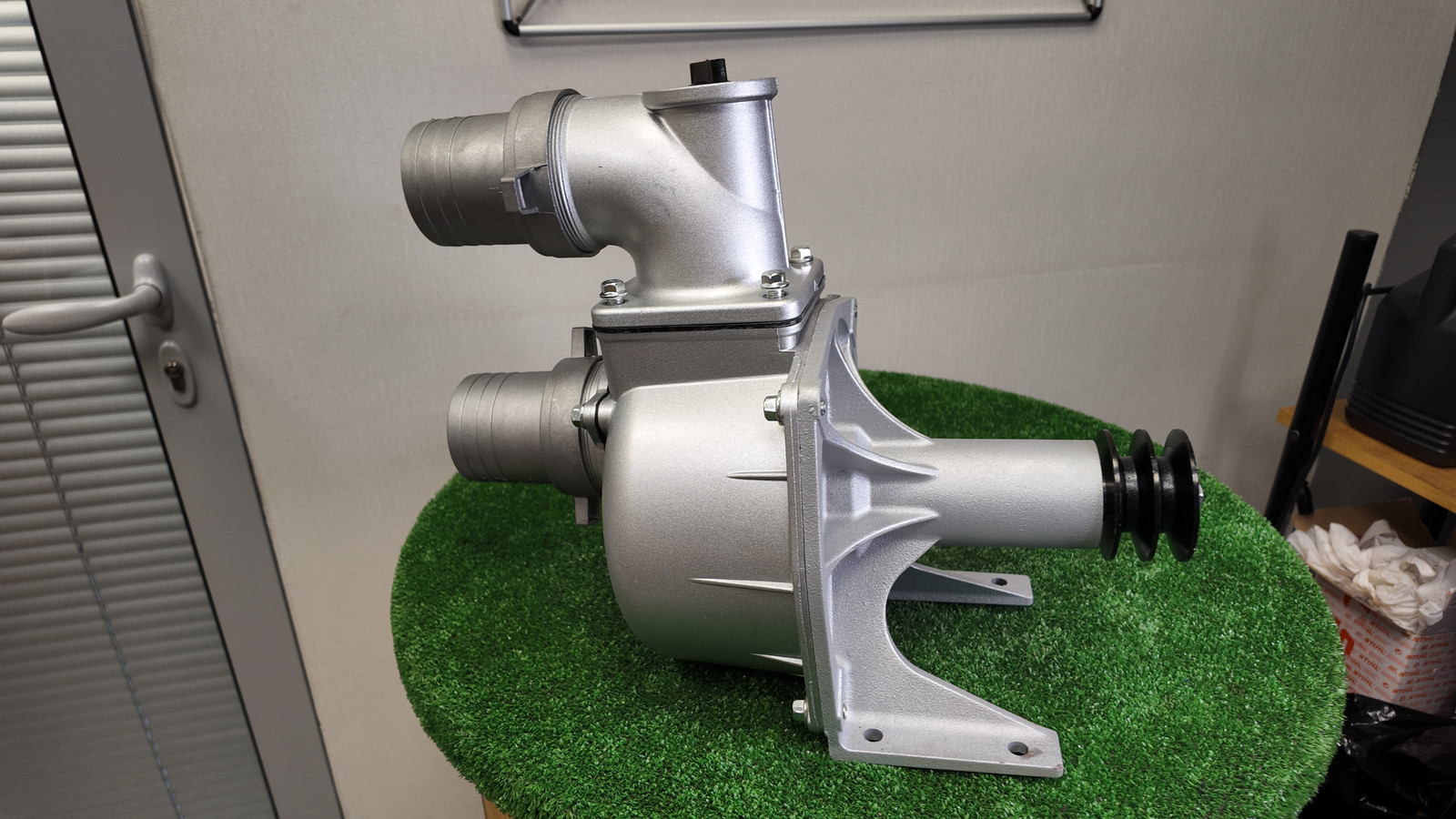 По суті цю помпу для води можна встановити не тільки на мотоблок або мототрактор: можна взяти будь-який двигун електричний або бензиновий під шків, встановити його на раму, підібрати ремінь профілю B і у вас готова мотопомпа!